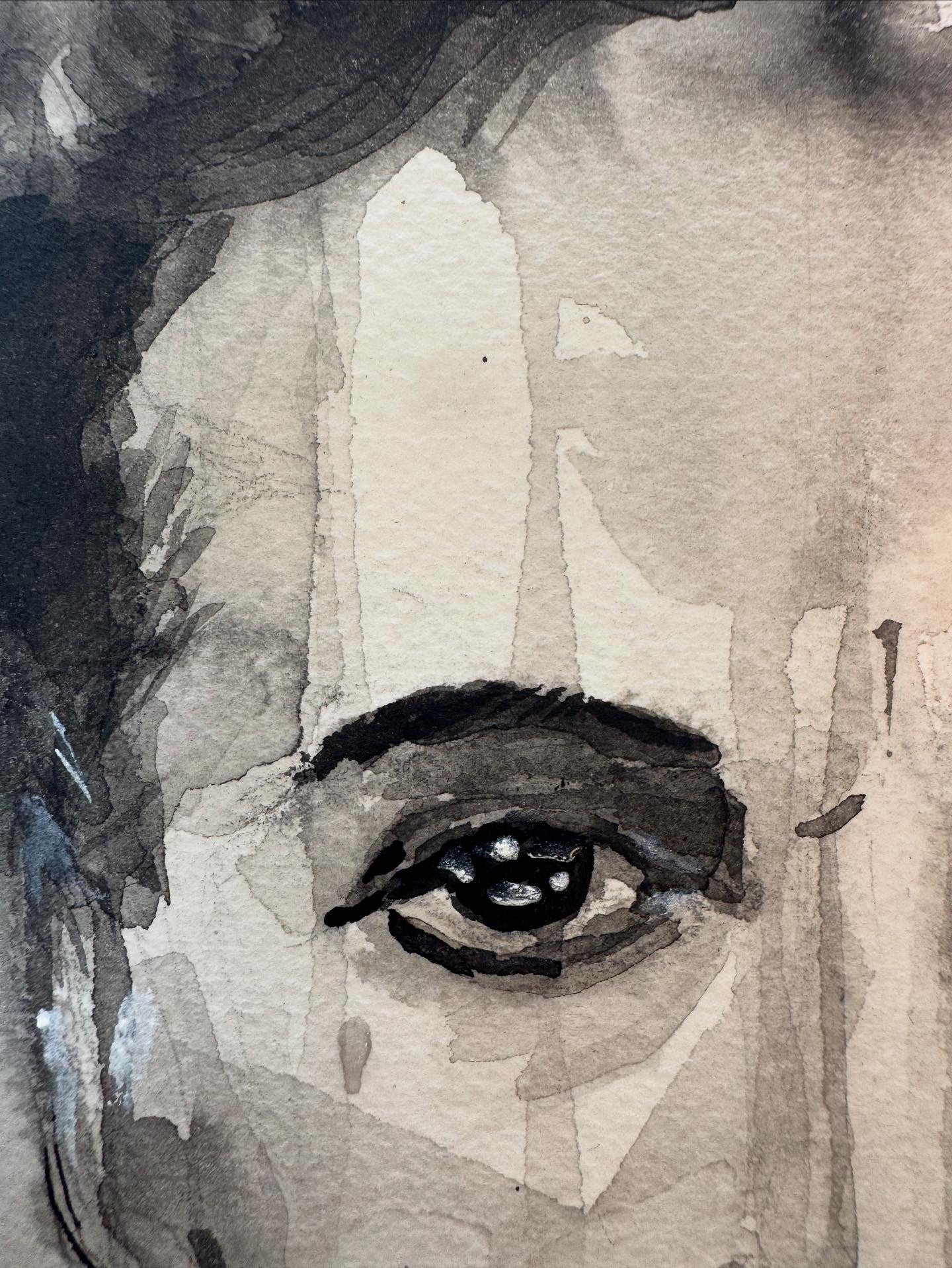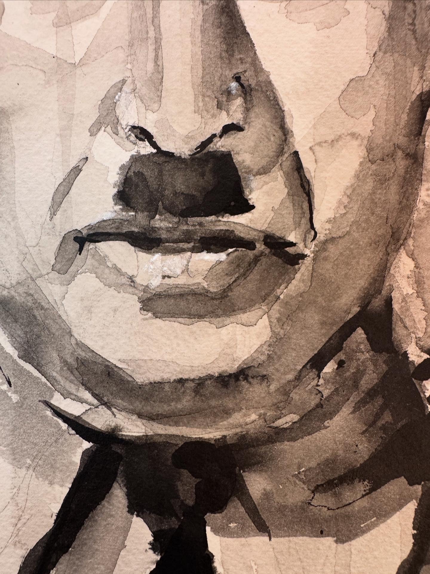“La Mirada del Dictador que No Era” es un retrato en tinta inspirado en la figura más simbólica de El gran dictador (1940). En esta obra interpreto ese instante en el que la rigidez del personaje se quiebra y emerge la emoción humana: la mirada del hombre que se oculta detrás de la máscara del tirano.