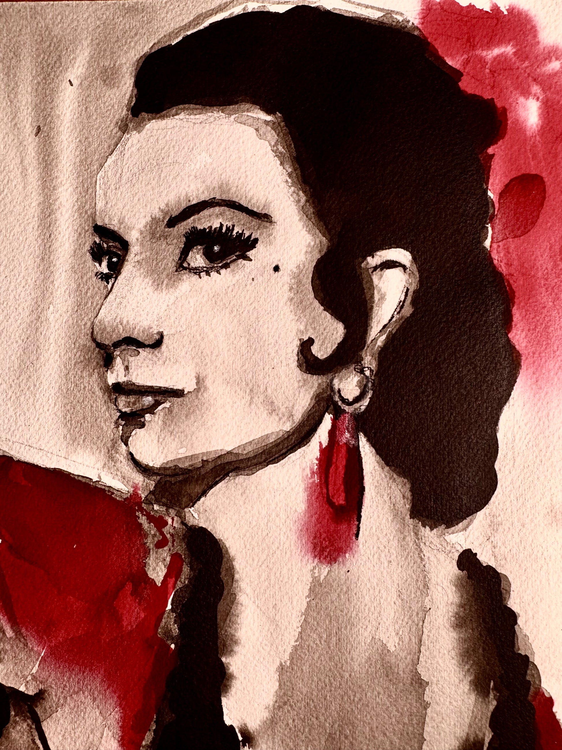 Esta obra forma parte de mi colección Inktober 2025, donde rindo homenaje a figuras que, como Lola Flores, rompieron moldes y encendieron su propia luz. Aquí no aparece solo como artista, sino como reina absoluta de su propio universo, coronada por el gesto, el movimiento y la intensidad.
